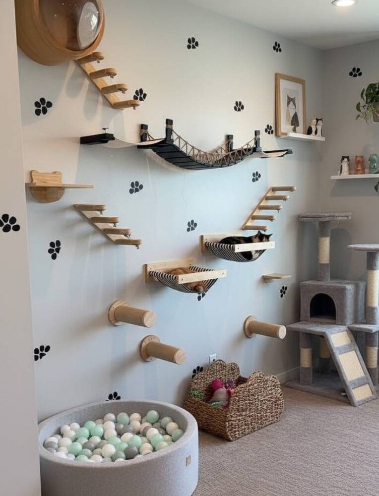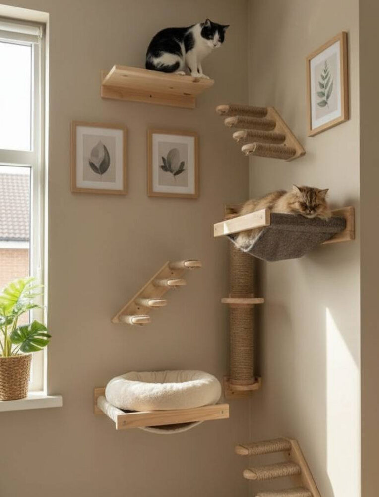 Cats instinctively seek out high vantage points to observe their surroundings safely. Expanding their vertical territory is the most critical step in proper feline enrichment. Installing sturdy Wood Cat Shelf Steps directly onto your drywall creates a highly engaging climbing wall.