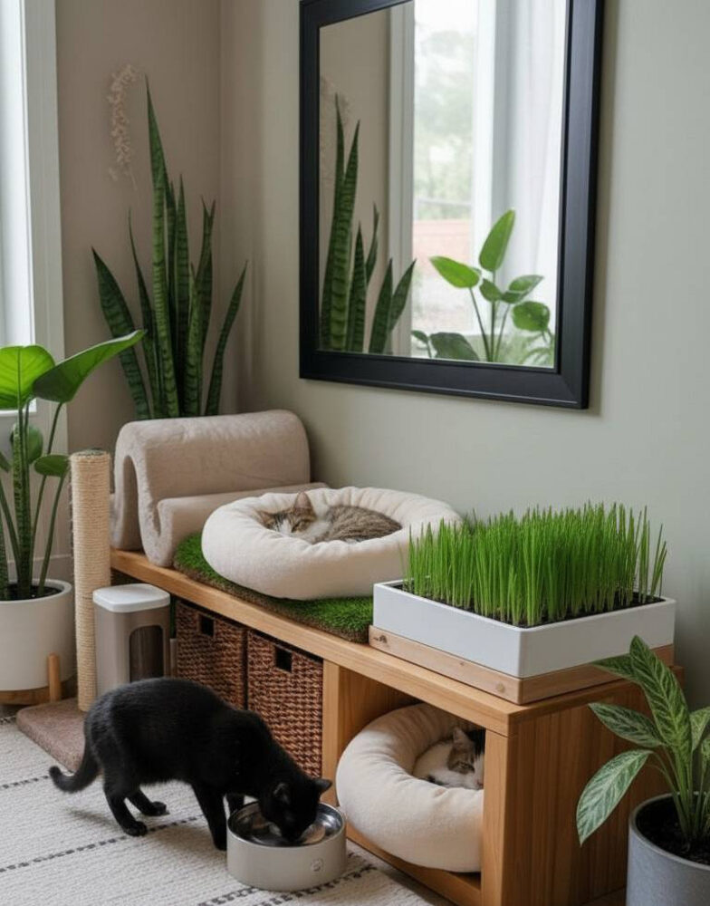 If you want decorative greenery, a Pet-Safe Indoor Plant (Spider Plant) adds lush life to the room. It purifies the air without posing any risk to your pets.