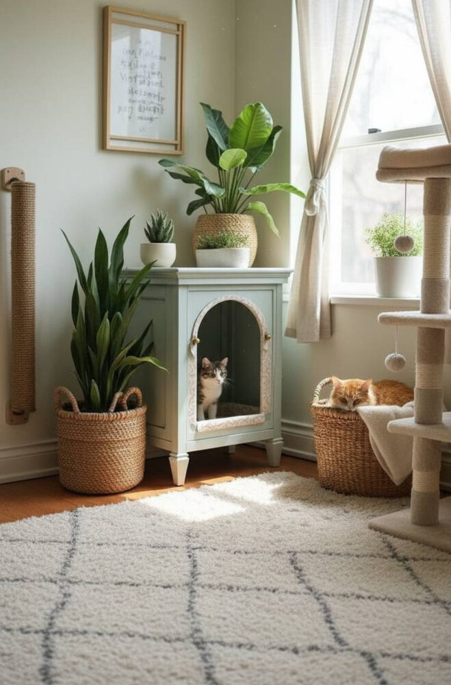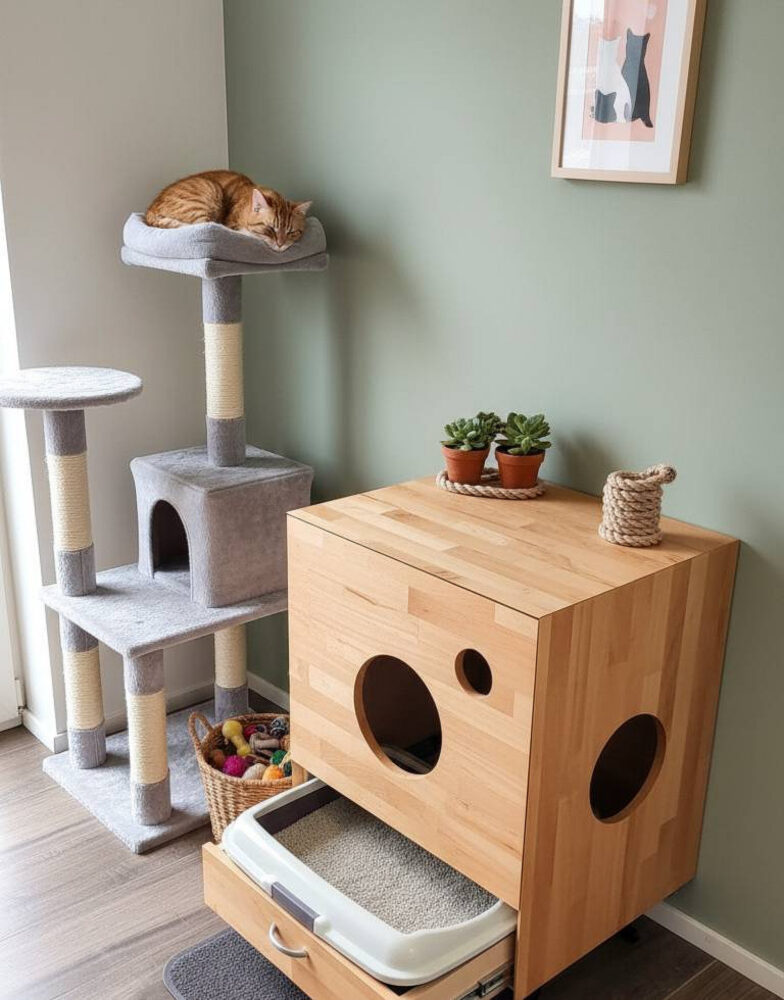 Nobody wants to stare at an unsightly plastic litter pan in their beautifully decorated home. Integrating smart litter box solutions is vital for maintaining a chic aesthetic. A Hidden Litter Box Enclosure masquerades as a stylish side table or storage bench.