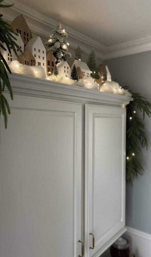 Lighting creates magic during the holiday season. Christmas lights for cabinets add a warm glow. String them along the tops of your upper cabinets.