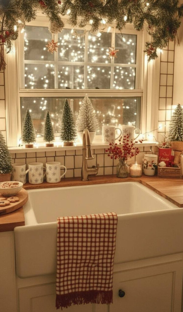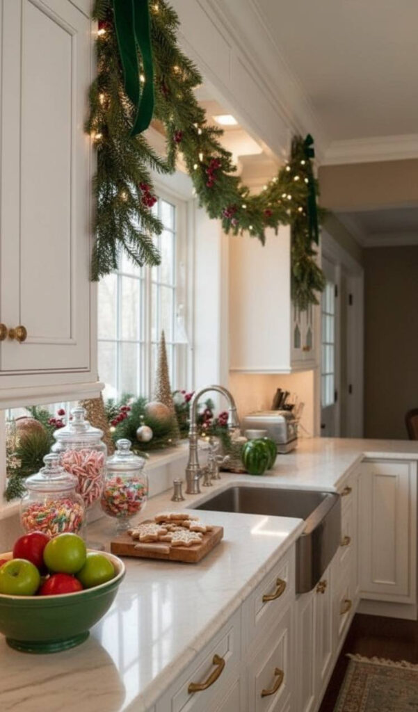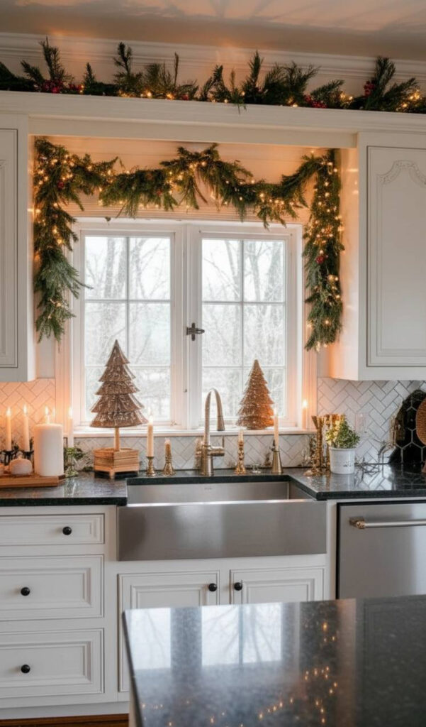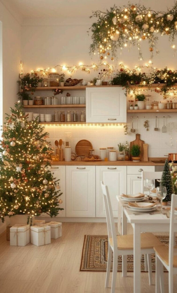 You can also weave lights into a garland. This doubles the impact of your decor. It turns your kitchen into a starry night.