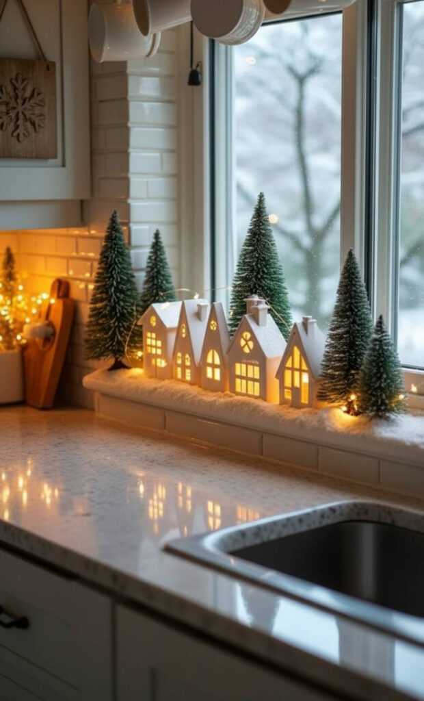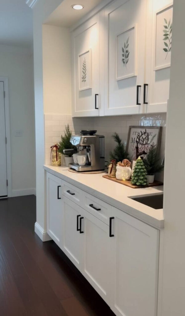 Perhaps you prefer a sleek, modern winter wonderland. Sticking to one theme prevents the room from looking cluttered. It creates a polished, designer look for your festive kitchen.