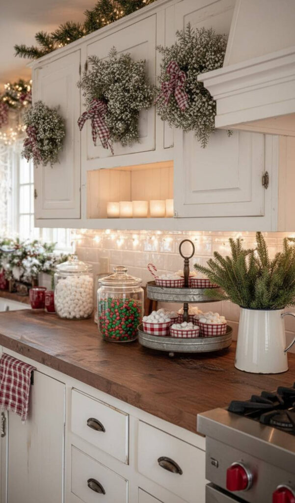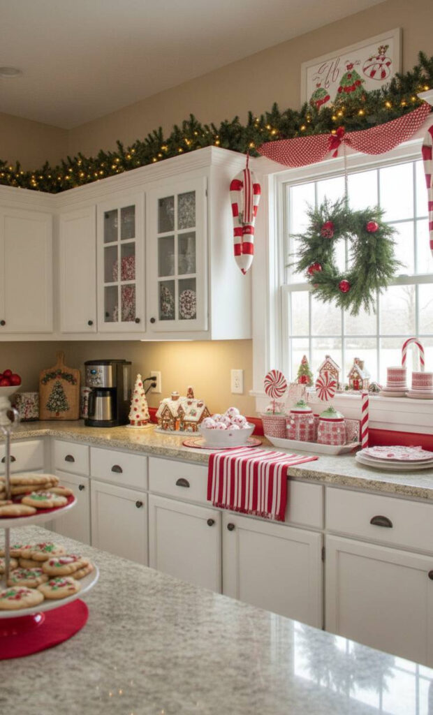 Pair this with peppermint-scented candles on the counter. This engages multiple senses for a full holiday experience. It creates a joyful and sweet atmosphere.