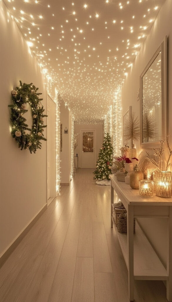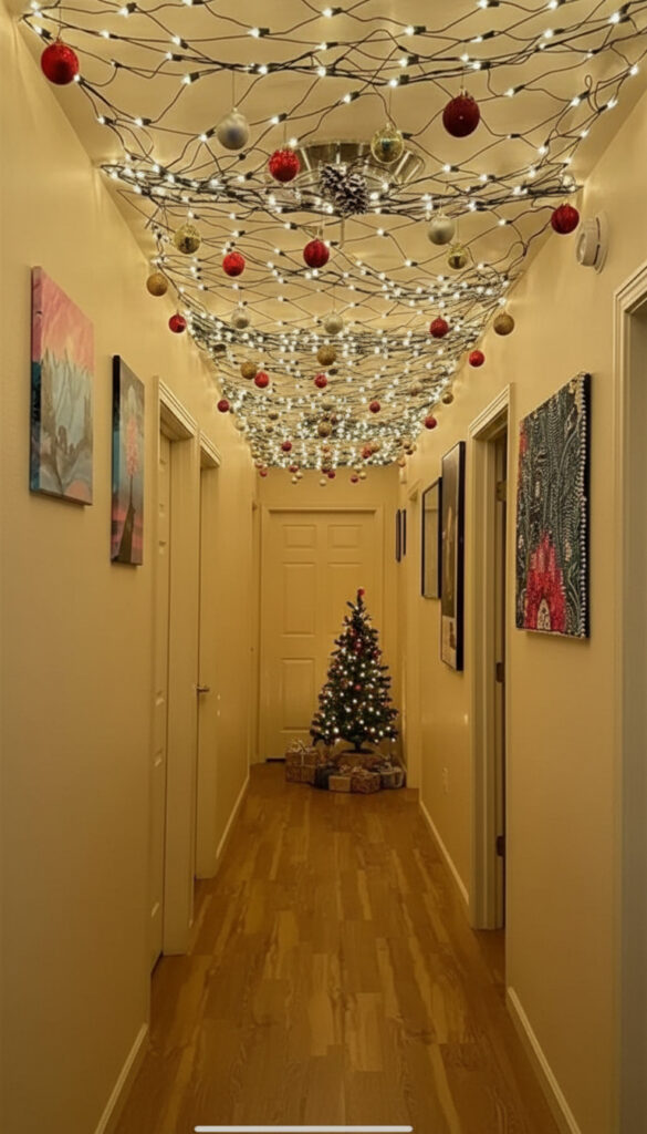 Hallways can sometimes be dark. Hallway lighting is a crucial element of Christmas decor. It adds warmth and magic to the space.