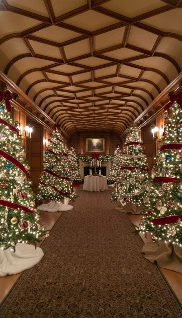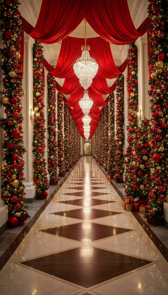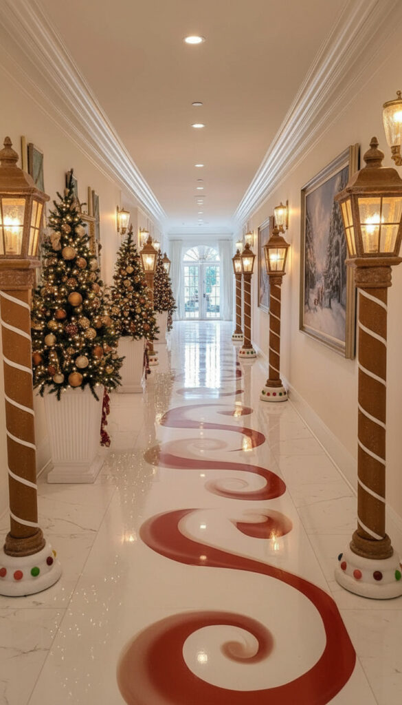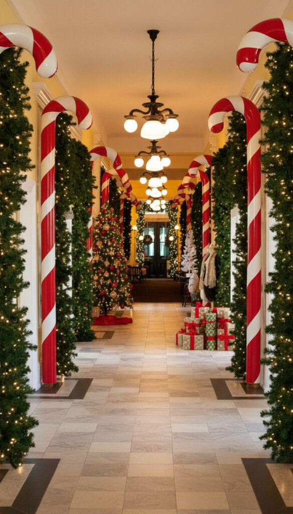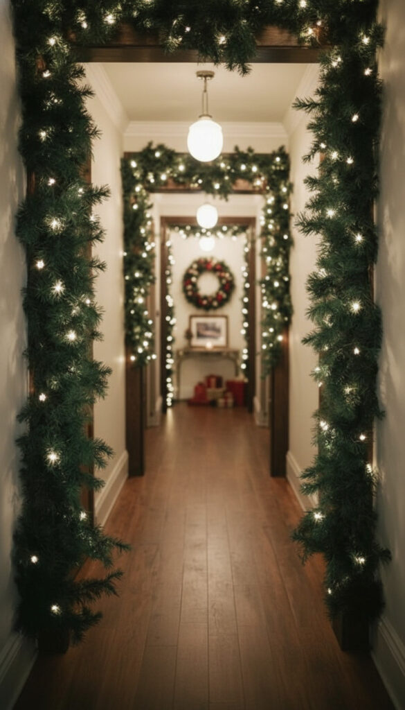 You do not want to block the walkway. You want to enhance the architectural features. This ensures your festive hallway remains functional.