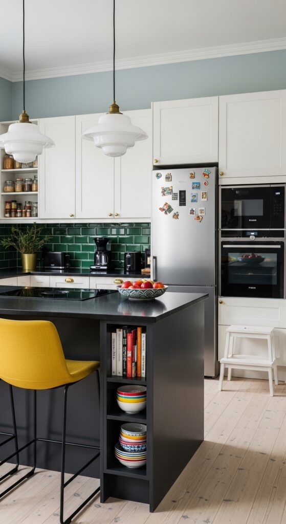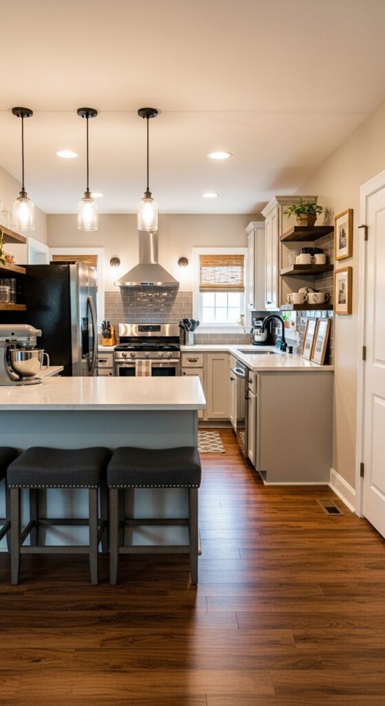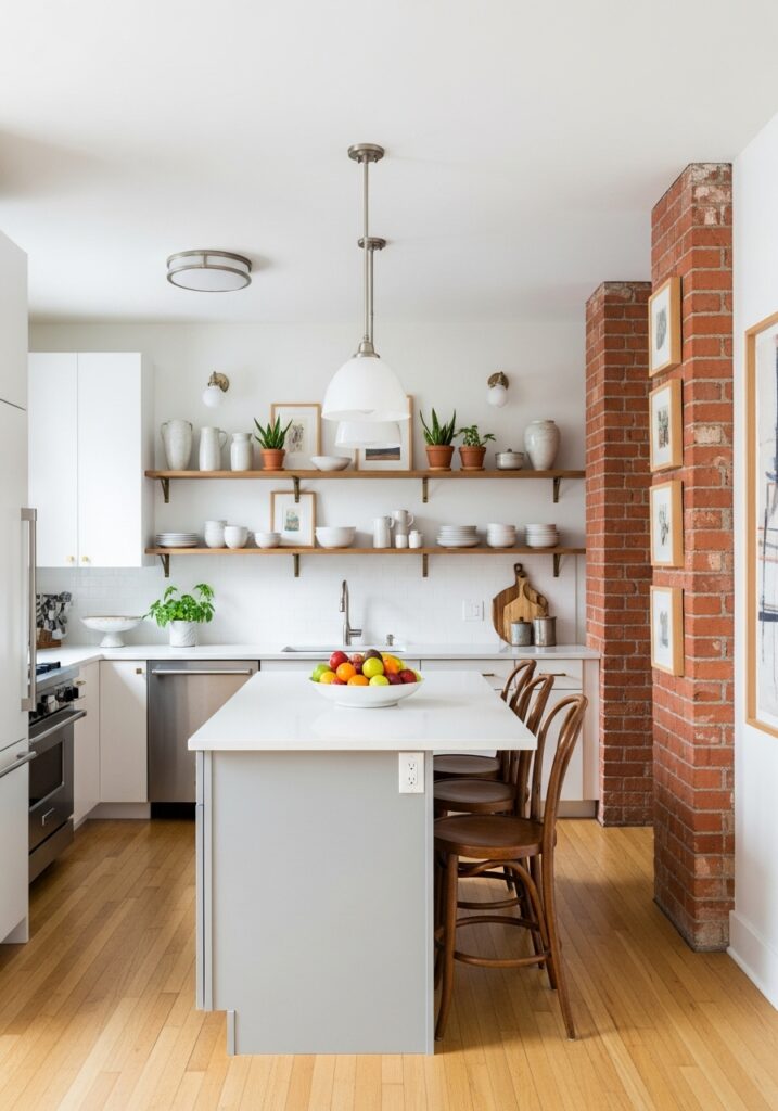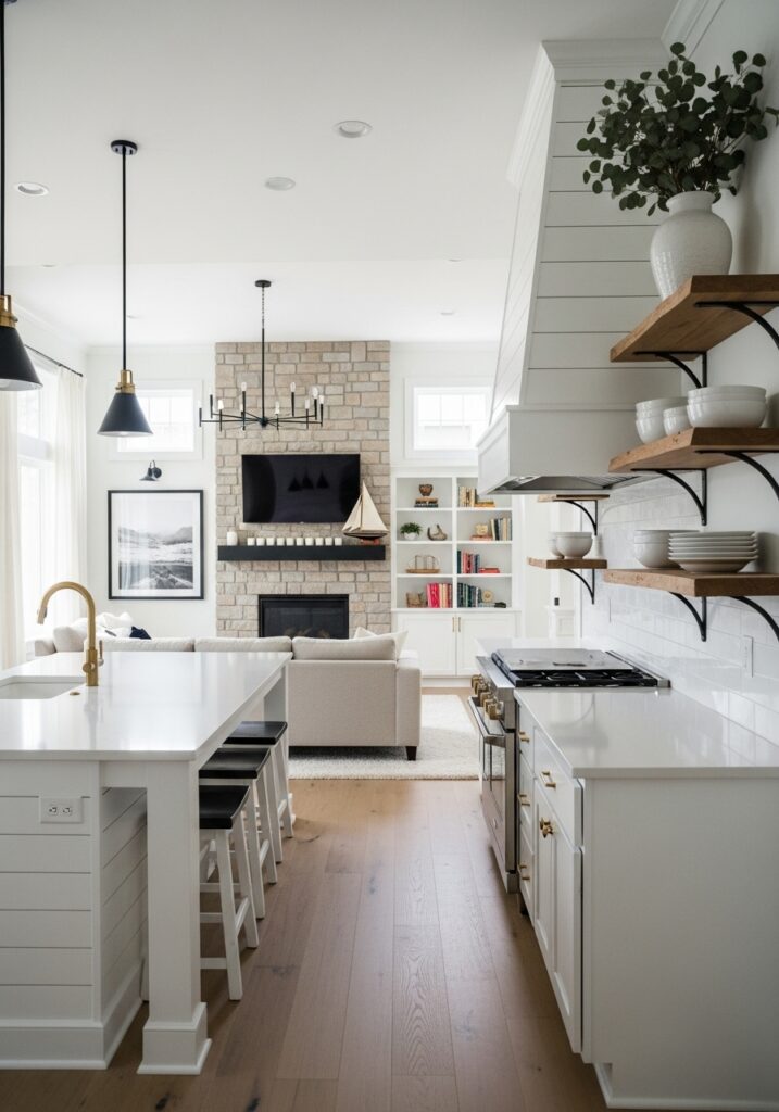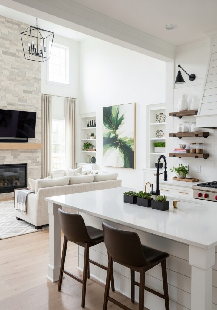 You can also add cabinets on the living room side. This space is perfect for storing items you use less often. Some designs feature open shelving for display. This is a great spot for cookbooks or decor.