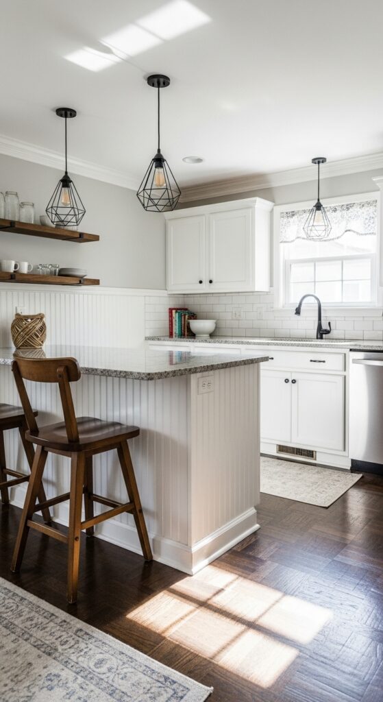 Finally, don’t forget task lighting. Hanging pendant lights above the peninsula is crucial. They define the space and provide necessary light. This is important for both cooking and seating.