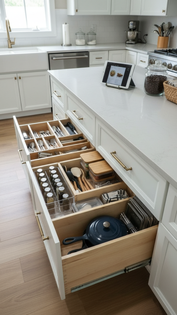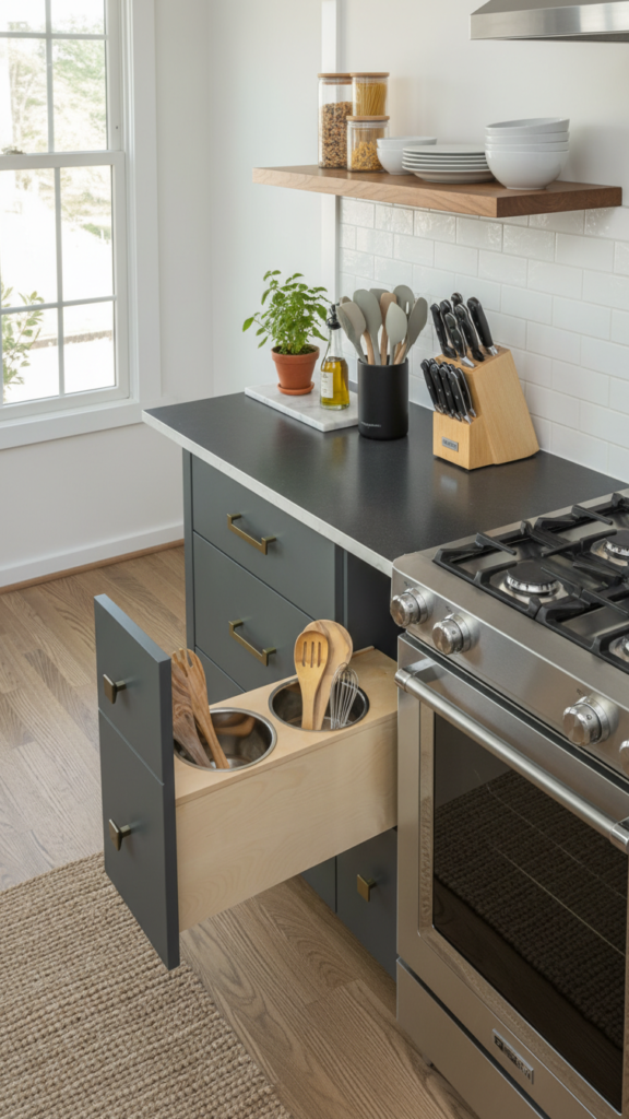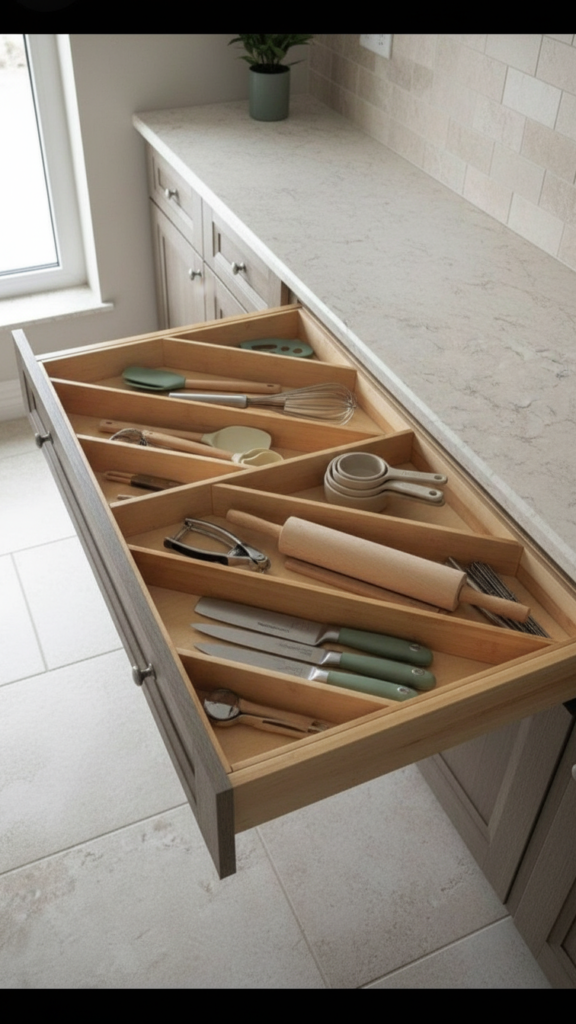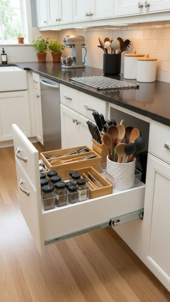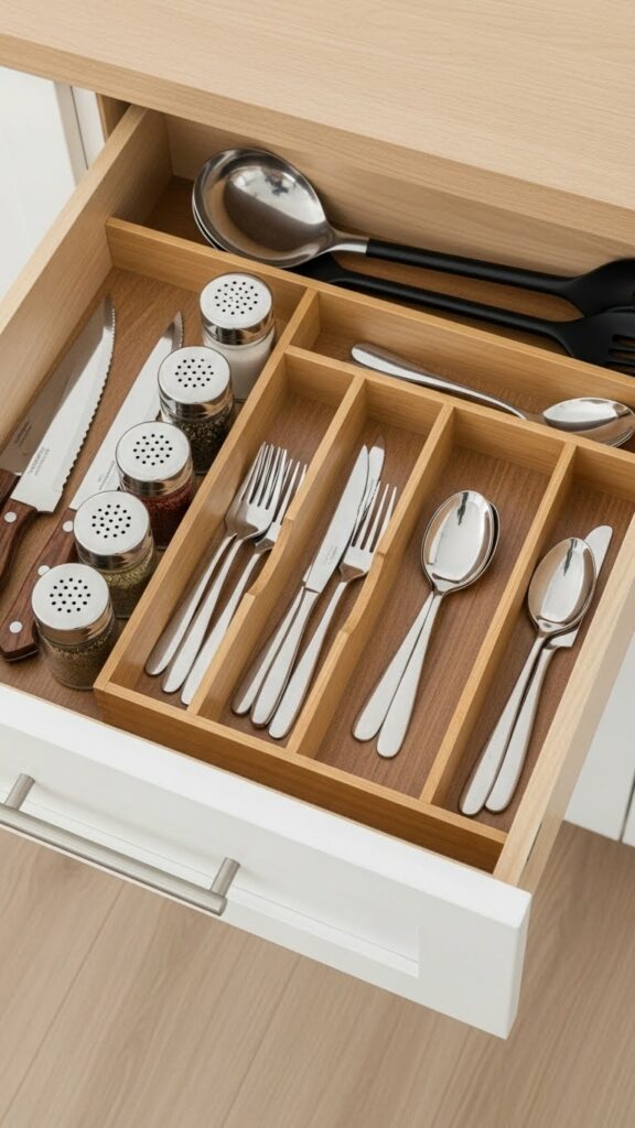Insert Bamboo Drawer Dividers (Adjustable) to keep utensils separated. A tidy drawer saves time and frustration during meal prep.