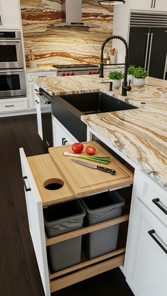 Use a cutting board that fits over the sink. This creates a temporary workspace and simplifies cleanup.