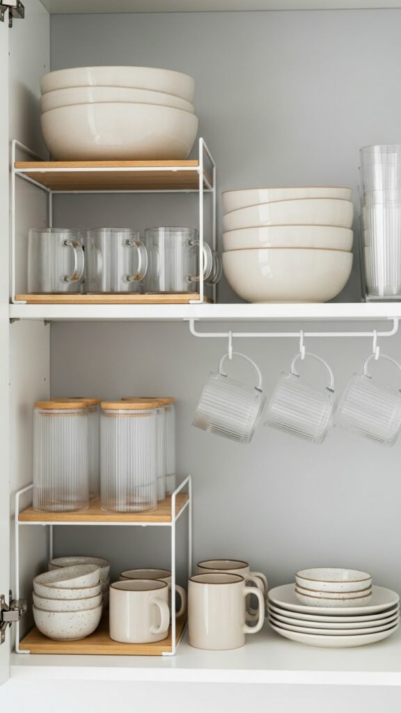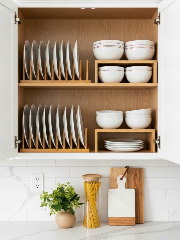 Dishes stored in deep drawers can slide and chip. Stacking them without support is risky for heavy stoneware.