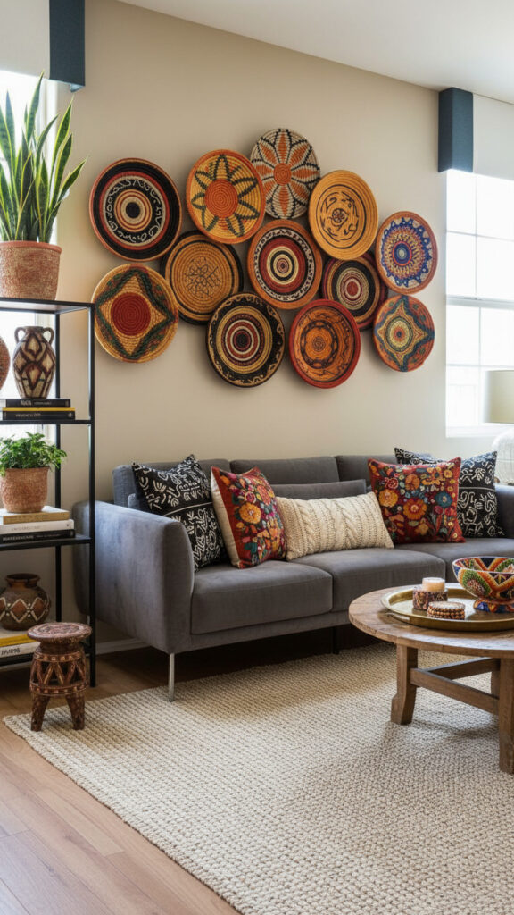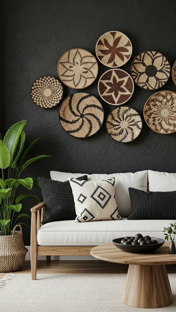 Woven Tonga or Binga baskets from Zimbabwe are essentially 3D wall art. In a modern room, create a large-scale installation by clustering a Hand-Woven Seagrass Wall Basket Set of varying sizes across a major wall. The radial patterns draw the eye toward the center of the arrangement, while the natural palm fibers keep the space feeling light. This installation adds a “living” texture to the room that framed art can never duplicate.