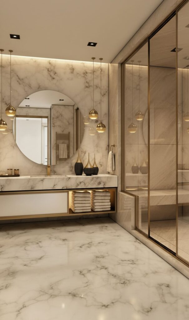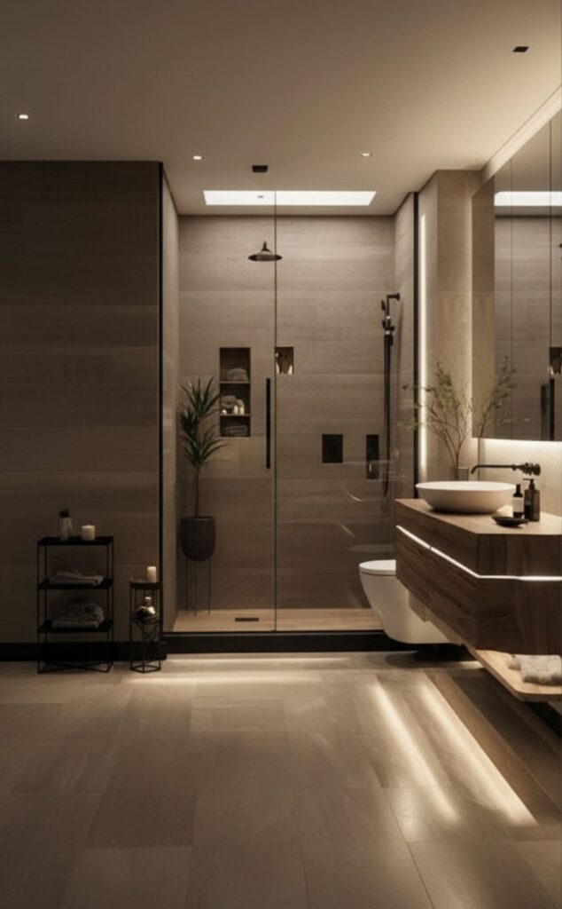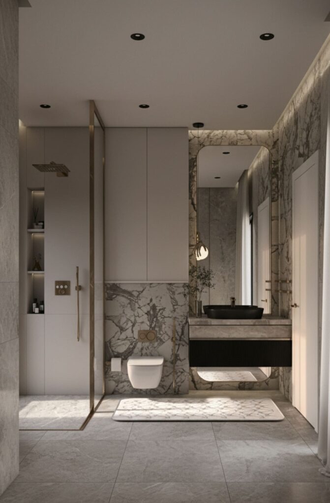 Include overhead lights and task lights. Add accent lighting in niches. This flexibility is a hallmark of modern luxury.