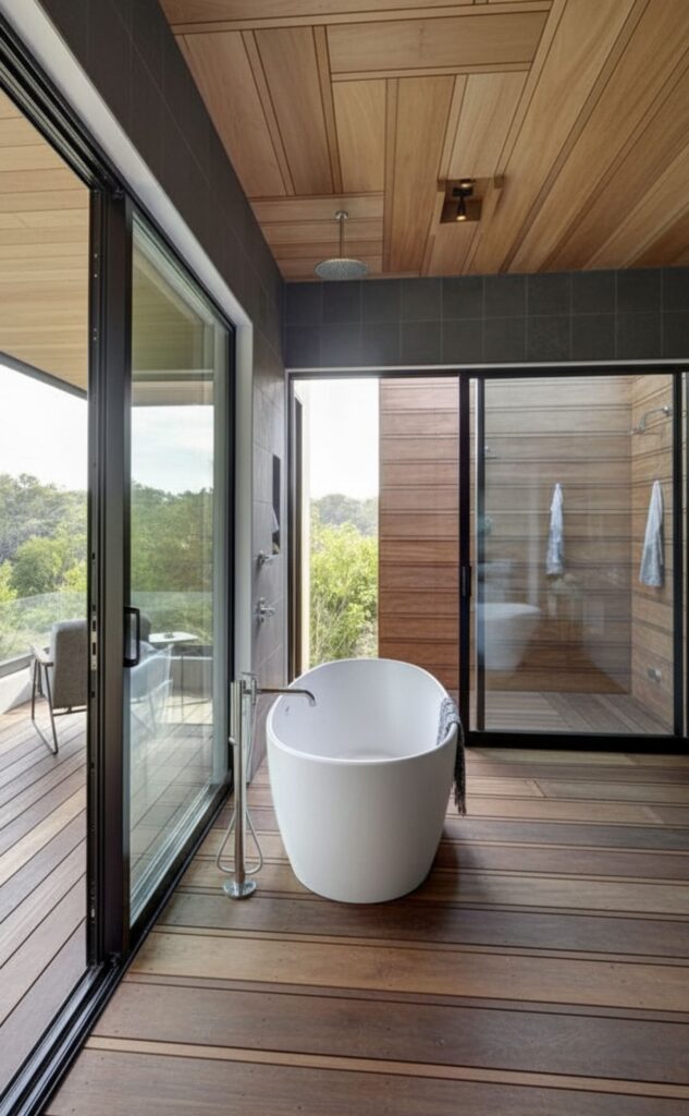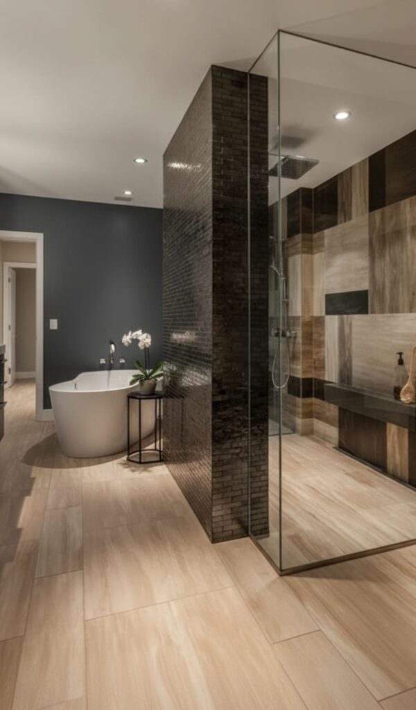 Modern does not have to mean cold. Incorporating organic materials like wood brings warmth. It creates a balance against cool tile and glass.