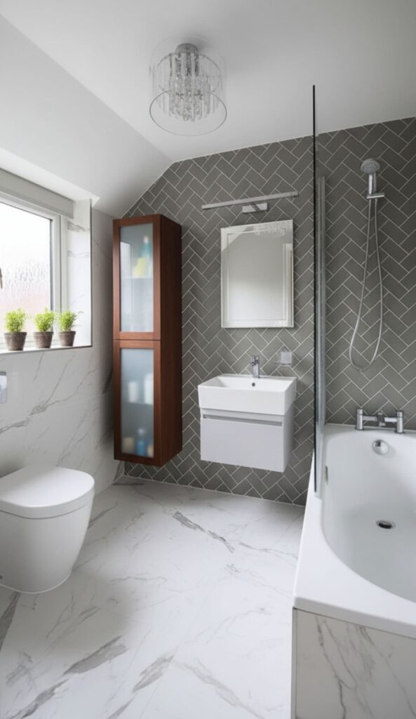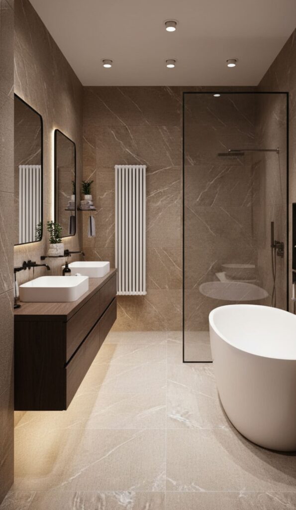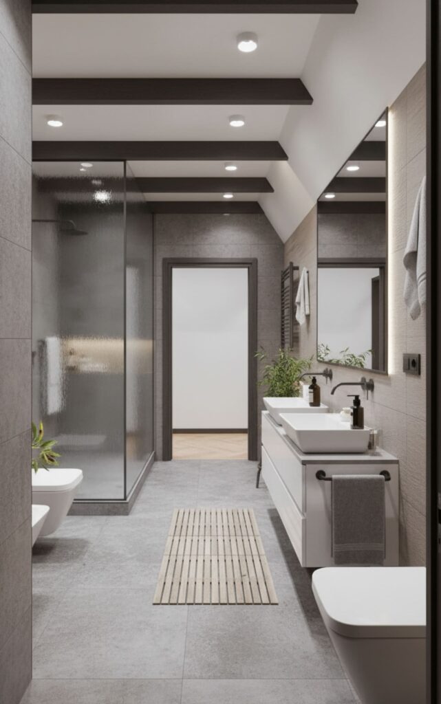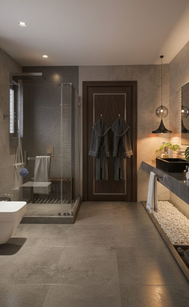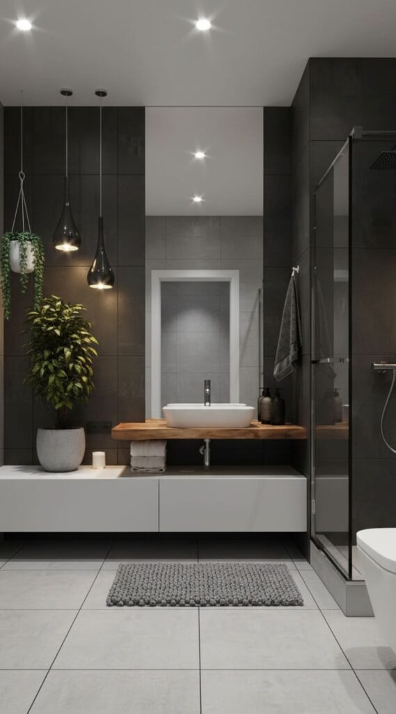 To avoid boredom, play with textures. Mix matte tiles with glossy fixtures. Texture prevents the room from looking flat.