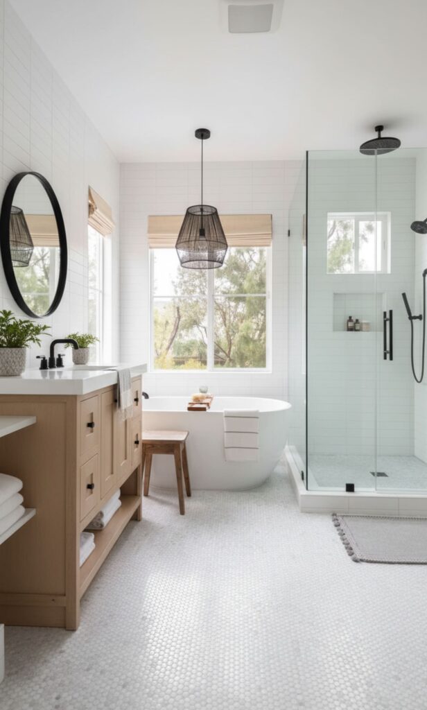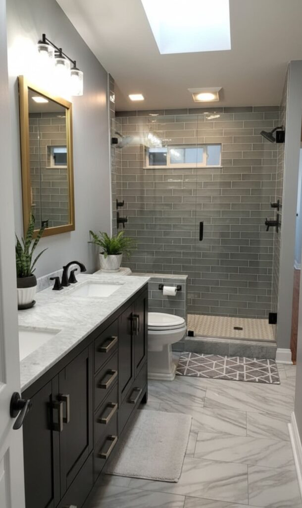 Natural light transforms a bathroom. If privacy allows, install a skylight. It floods the room with sun without compromising privacy.
