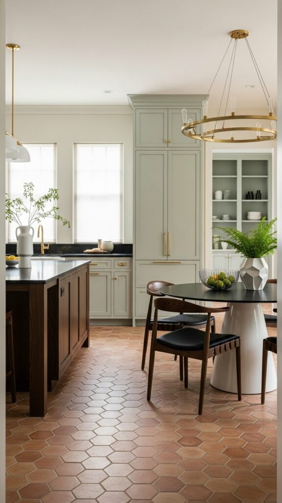 For mudrooms or pantry areas, use brick pavers. Lay them in a herringbone pattern. It is durable enough for muddy boots and looks incredible.