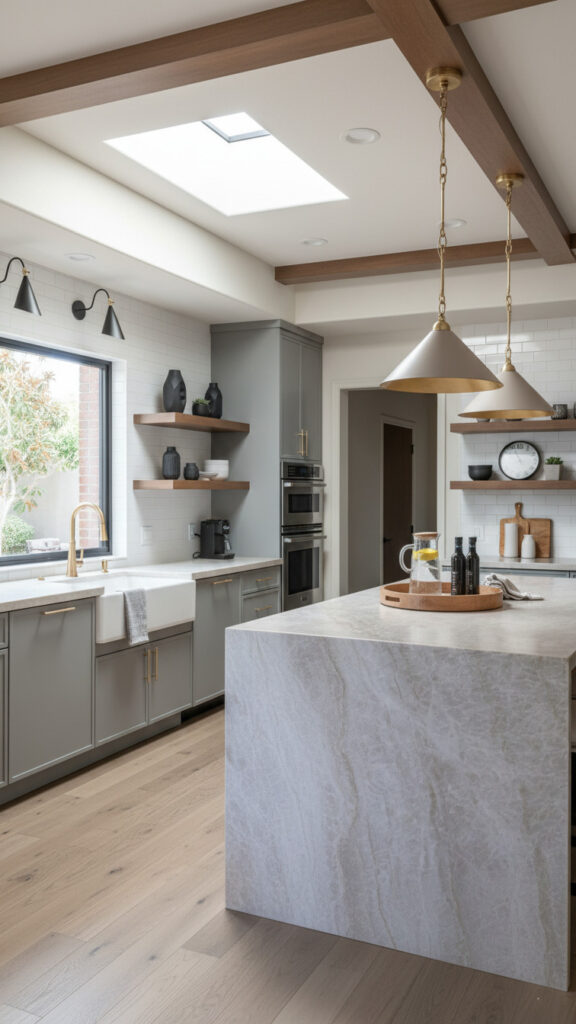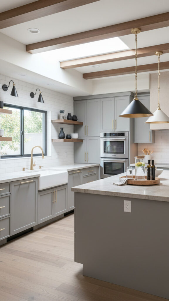 Paint is powerful. Painting existing cabinets “greige” (grey-beige) instantly modernizes them.