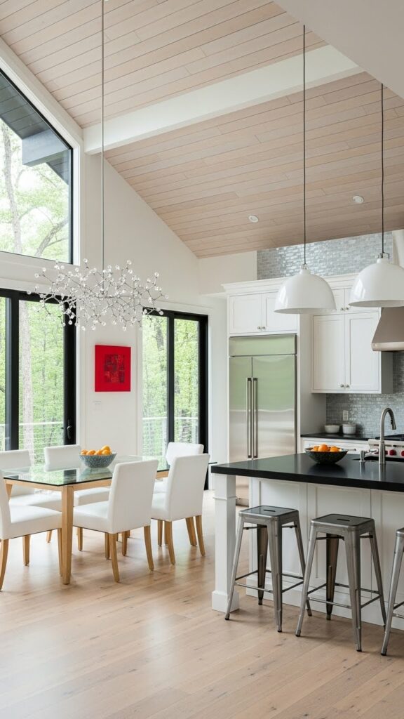 Horizontal shiplap had its moment. Now, vertical V-groove paneling is the trend. It draws the eye upward. It makes standard ceilings feel cathedral-like.