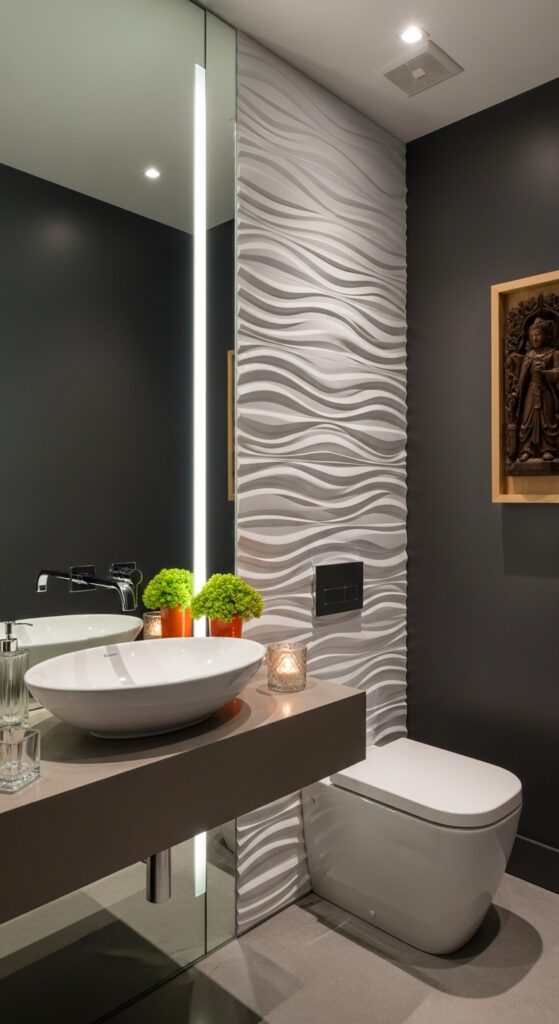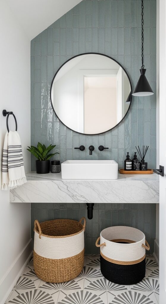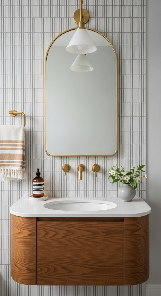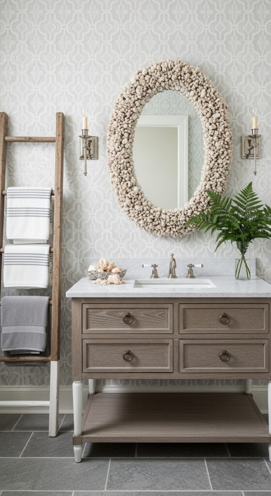The mirror itself is a key focal point. Don’t just pick a basic, functional mirror. Choose one with a unique shape or a decorative frame. It can act as a beautiful piece of wall art.