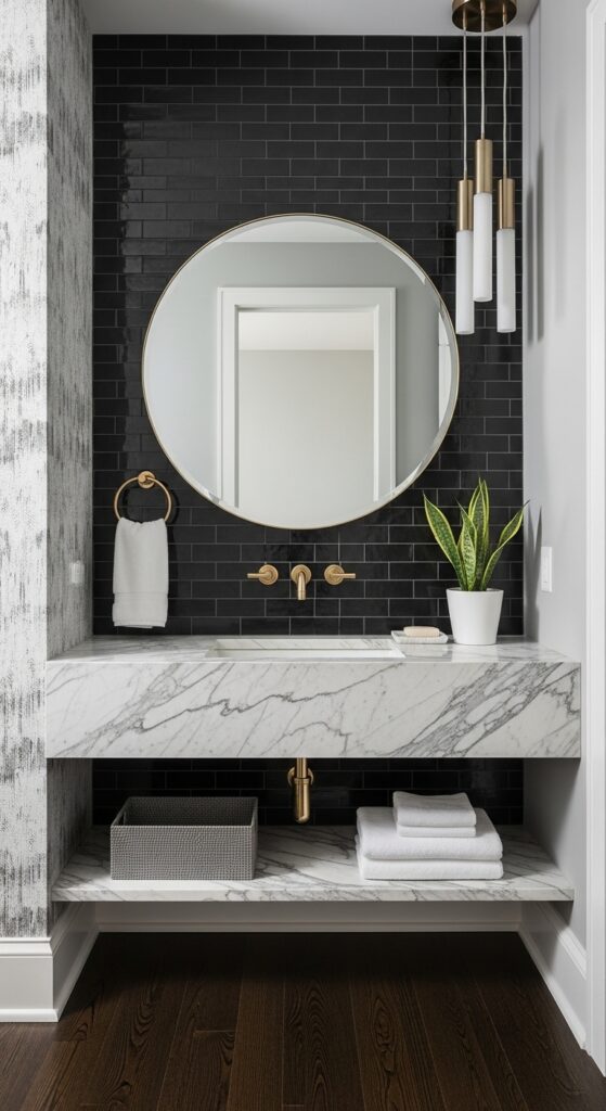 Great powder room ideas can transform a tiny space. This room is the perfect place for bold design. It’s your chance to make a lasting impression on guests. Think of it as a small jewel box in your home.
