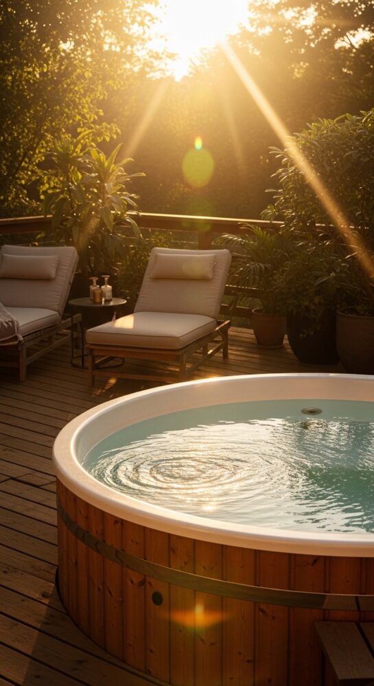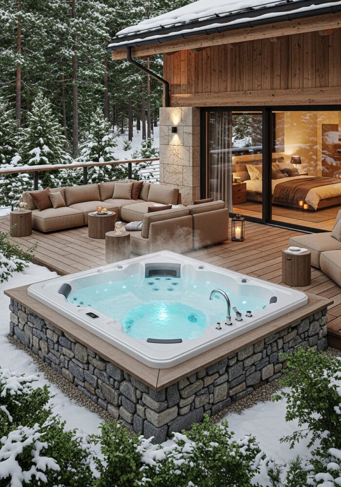 A hot tub is not just for summer evenings; it is magical in winter. Soaking while it snows is a unique pleasure.