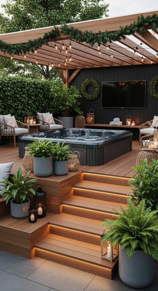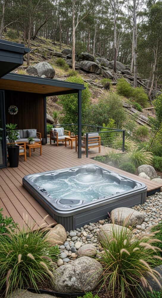 Plan your decking design to include steps or a sunken platform for easy entry. This elevates the aesthetic value of the entire spa area.