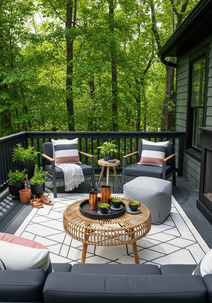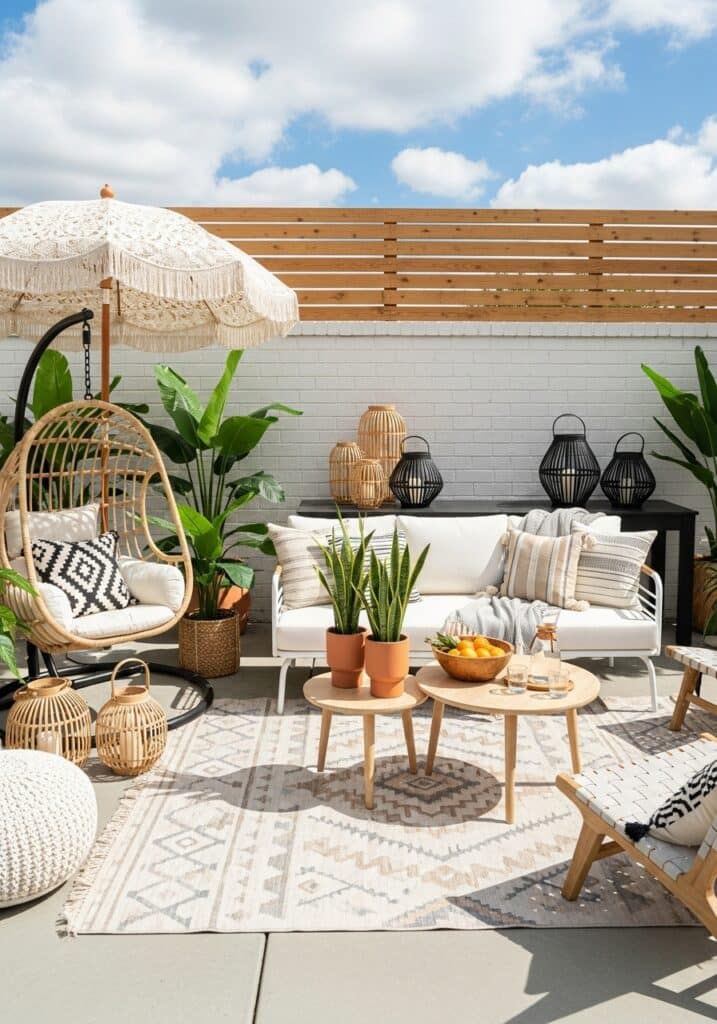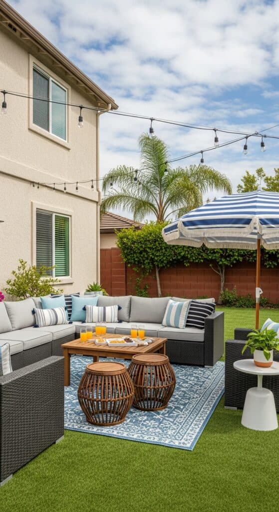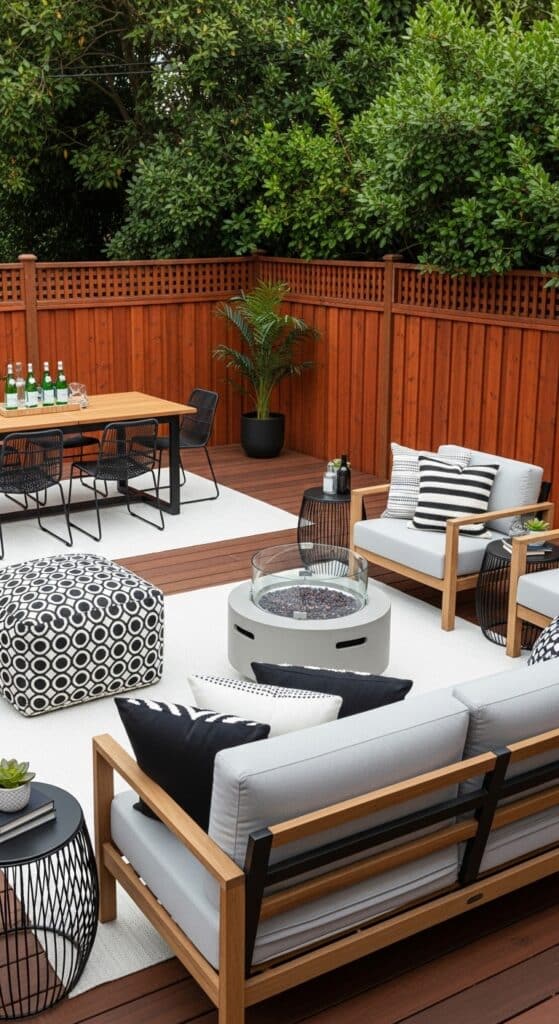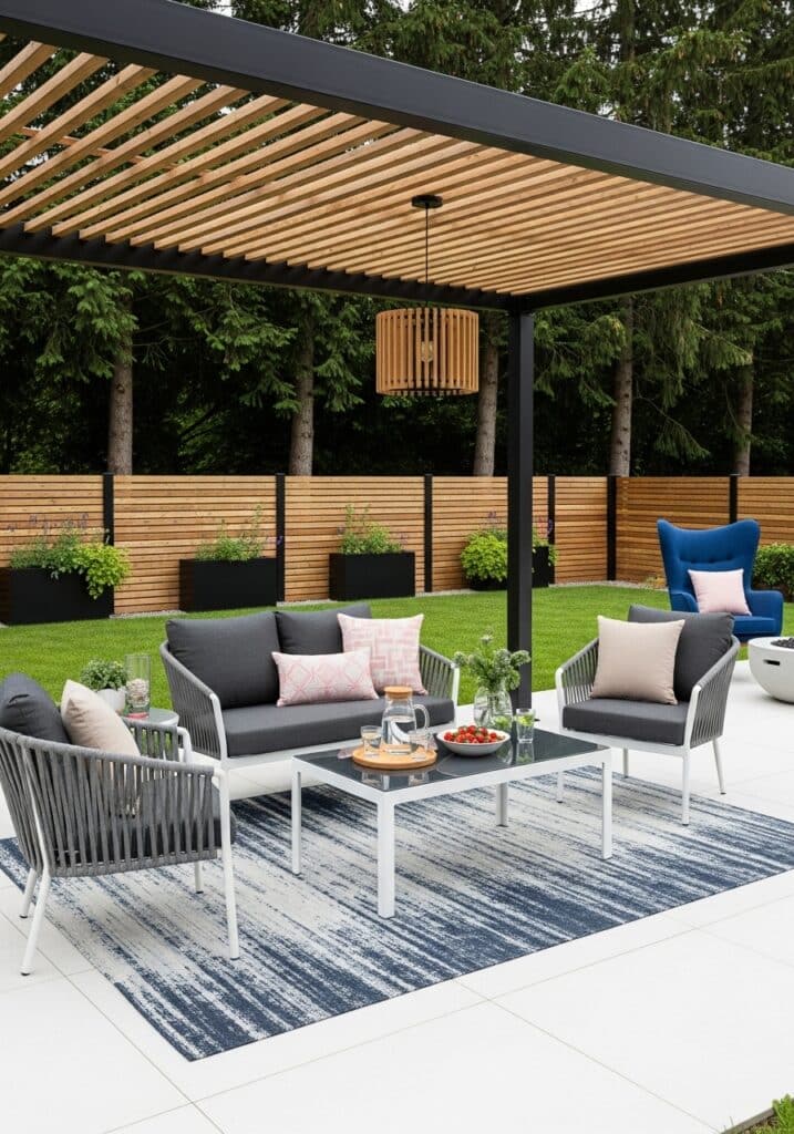 Define the layout to create a room-like feel. An outdoor rug can anchor the entire space. It visually separates the area from the yard. A pergola can also create a strong boundary.