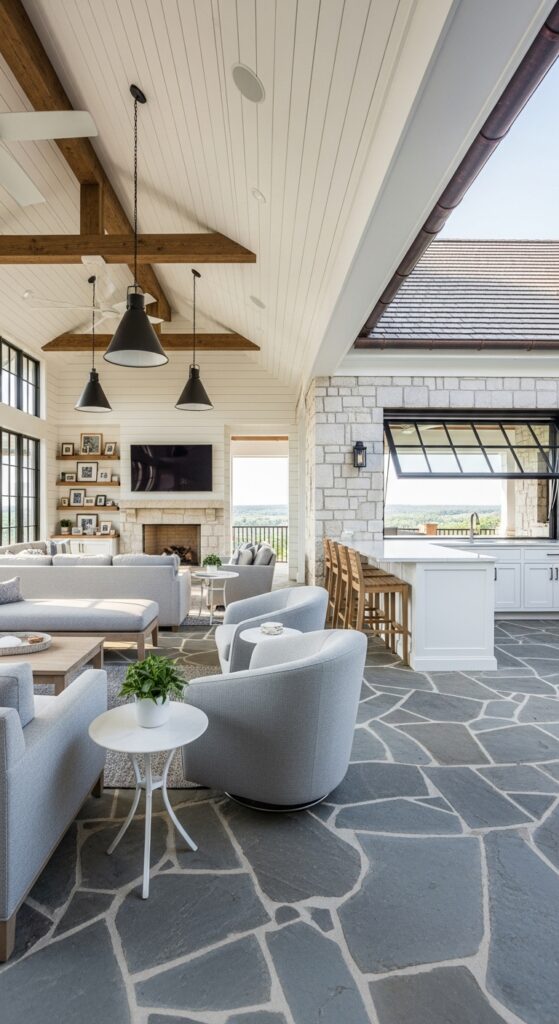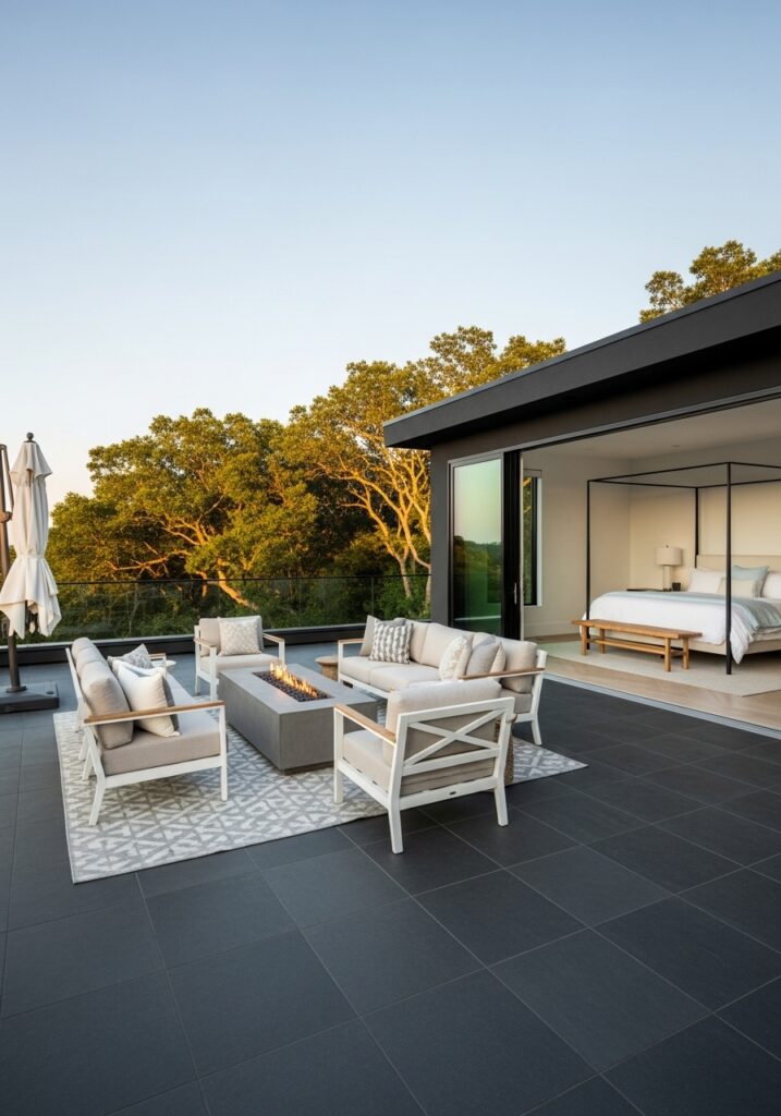 Every great room needs a clear focal point. An outdoor fireplace is an excellent option. It provides warmth and a central gathering spot. A modern fire pit works well for a sleek look.