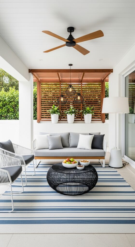 You can also add other unique design touches. Hang an outdoor mirror to reflect light. This can make the space feel much bigger. Weather-resistant art adds a personal touch.