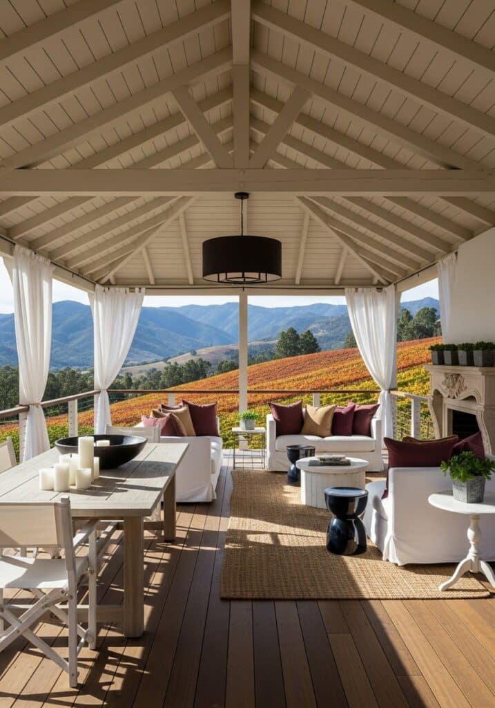 Textiles are key to making the space feel cozy. Use plenty of outdoor throw pillows for comfort. They also add pops of color and personality. Curtains can soften the edges of the space.