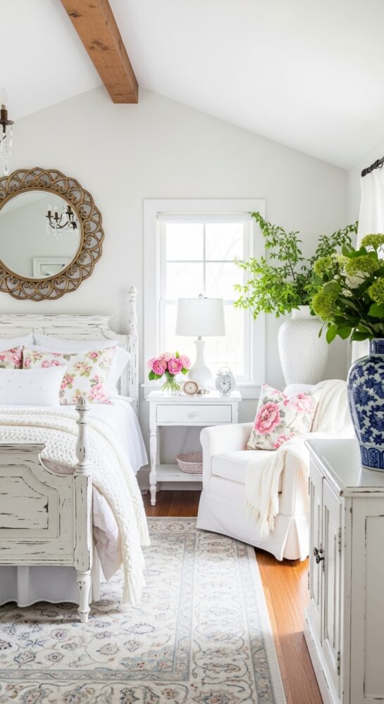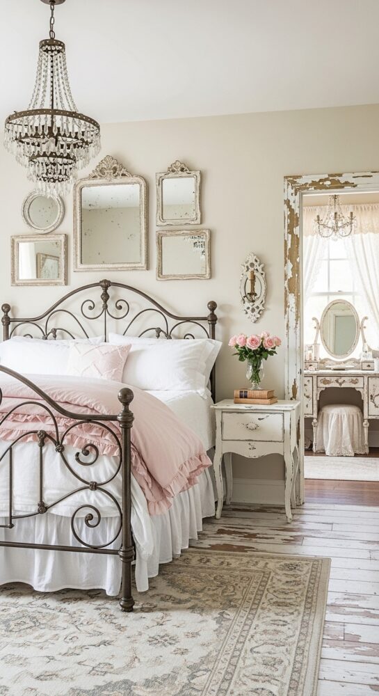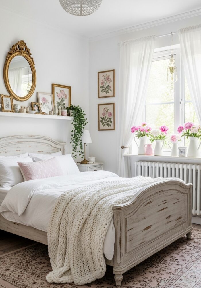 Incorporate distressed wood furniture like a chipped nightstand or a weathered armoire. Imperfections add history and soul to the room.