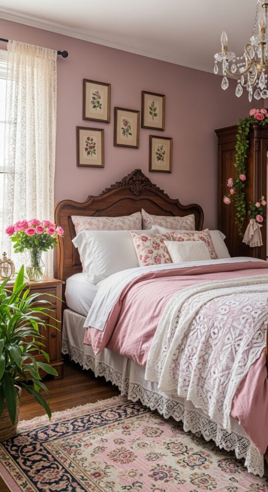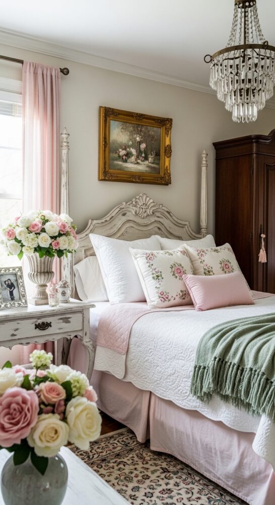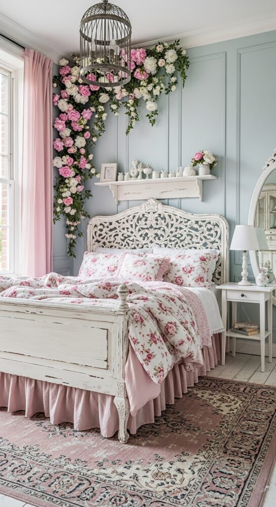 Hang a wreath of dried lavender or place a Decorative Birdcage (Vintage Ornament) on a high shelf. It adds a permanent touch of romantic bedroom vibes.