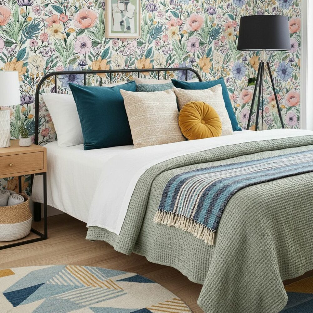 Incorporate Floral Peel and Stick Wallpaper on an accent wall or use throw pillows featuring roses. Keep the background colors light to maintain the airy vibe.