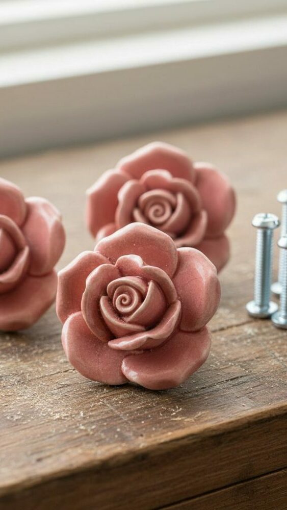 Replace dresser handles with Ceramic Rose Knobs. It is a quick mini-makeover.