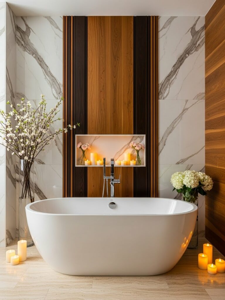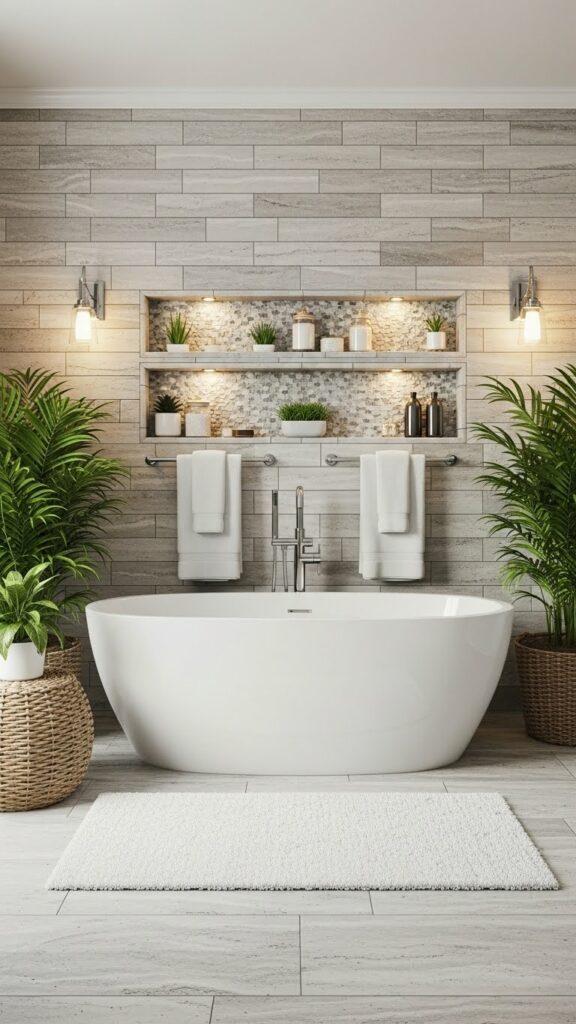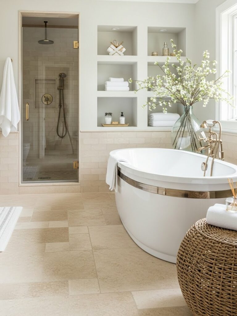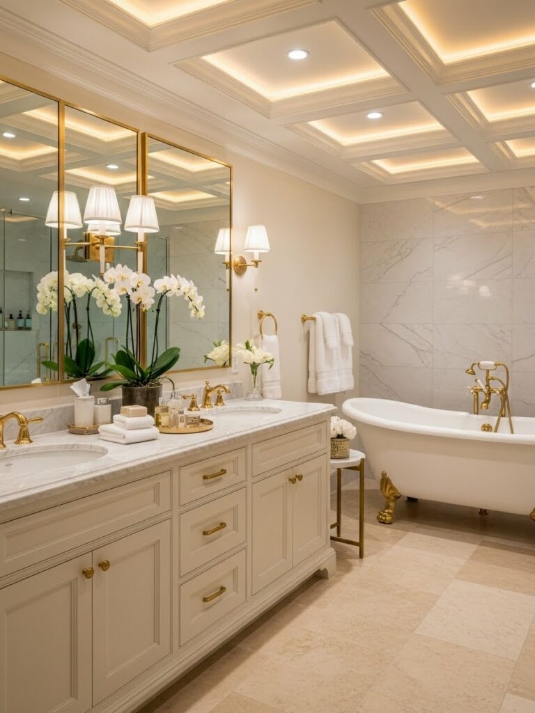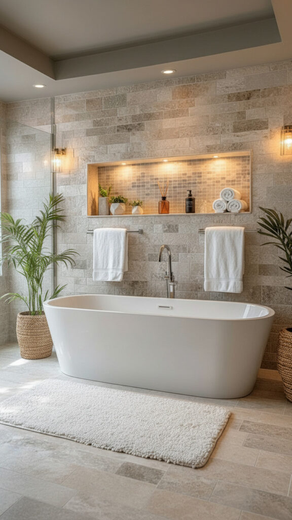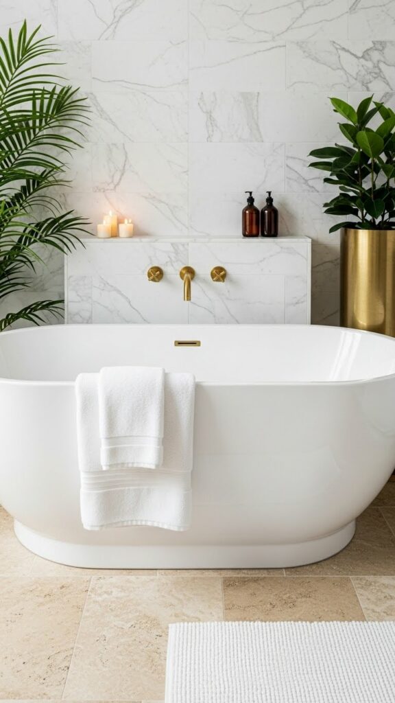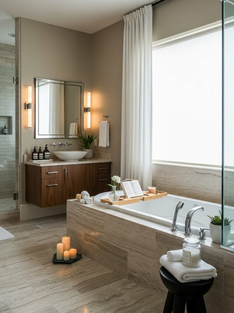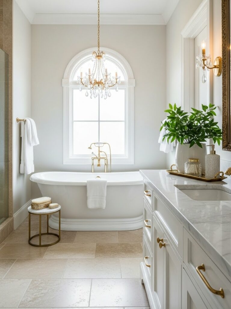 If codes allow, hang a statement chandelier over the tub. It acts as jewelry. It signals that this room is for leisure, not just utility.