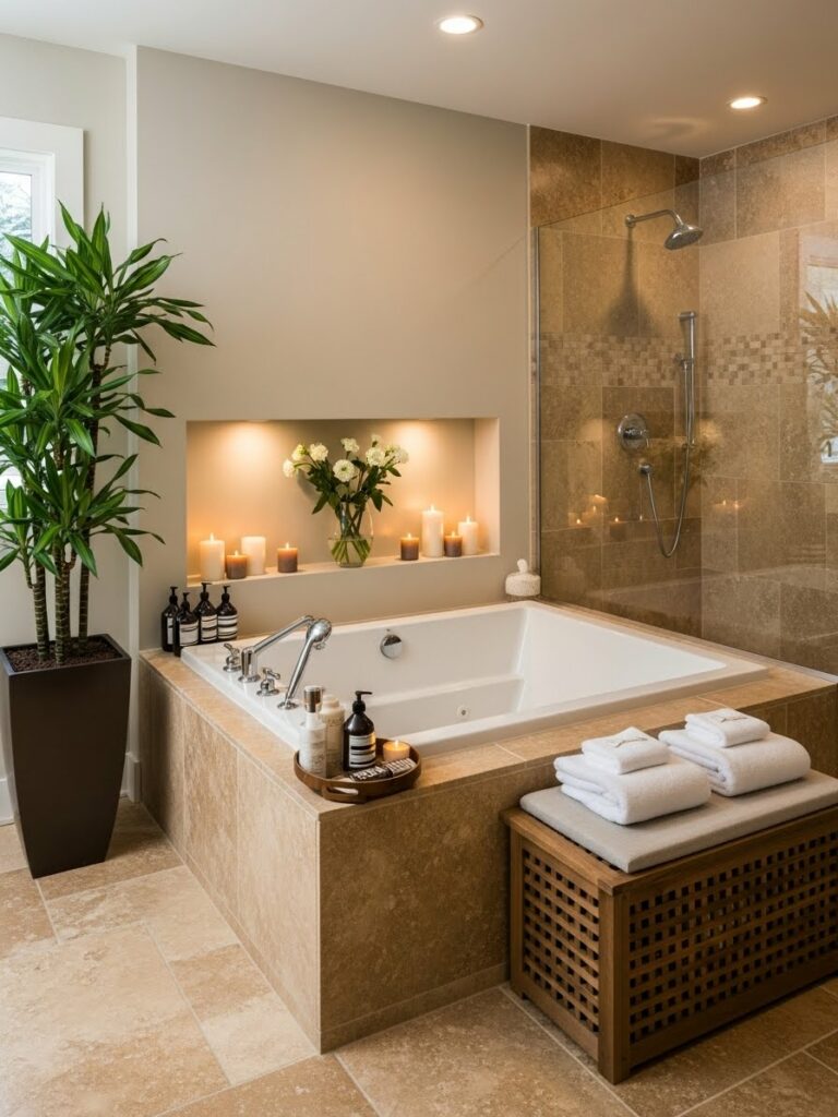 To execute spa bathroom ideas effectively, you must understand the “why.” A spa is not defined by expensive lotions. It is defined by the absence of stress.