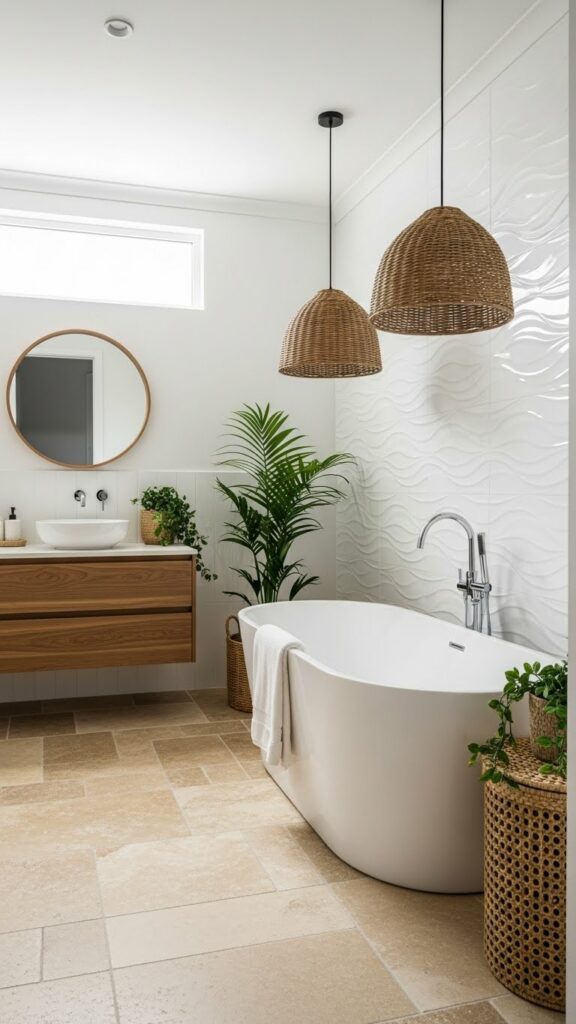 - Bamboo Accents: Ladders for towels or blinds for windows.