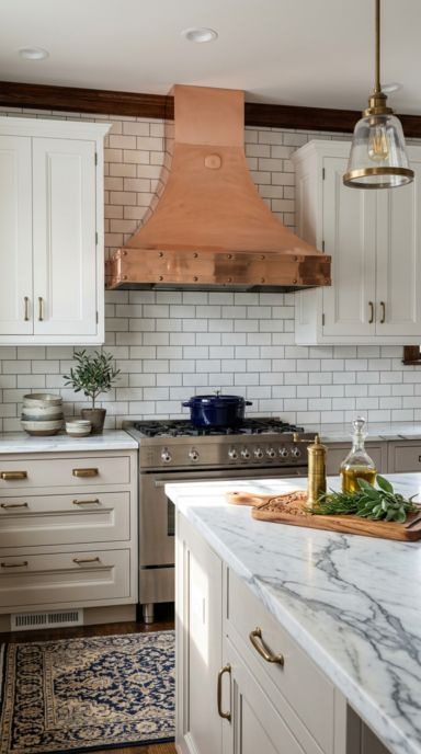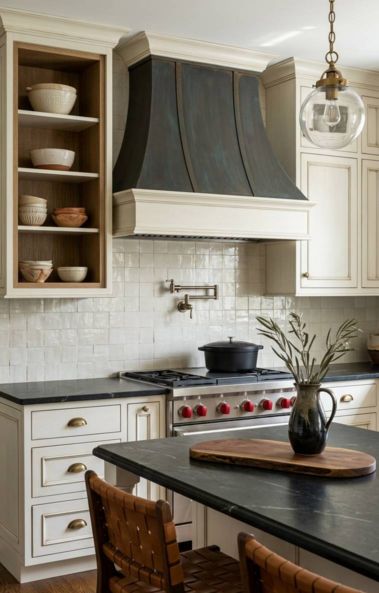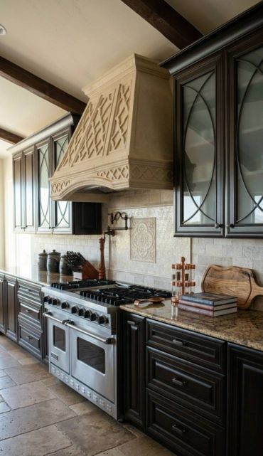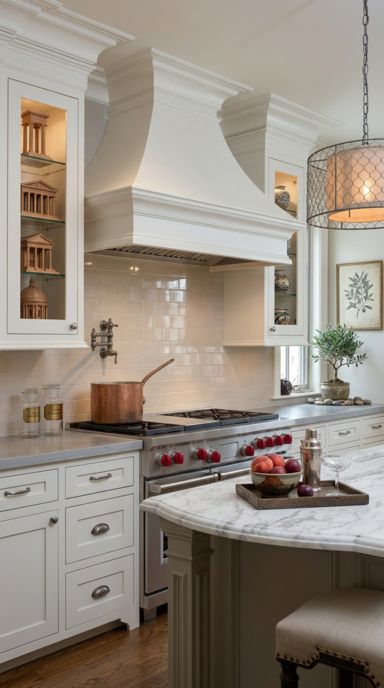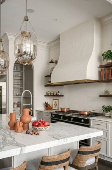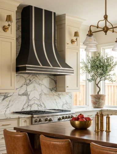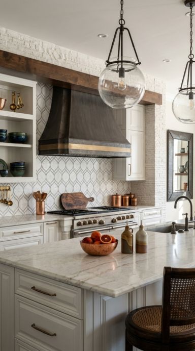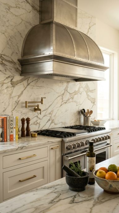 A Tapered Alabaster Stone Vent Hood provides a stunning, gravity-defying focal point. It feels both deeply romantic and incredibly exclusive.